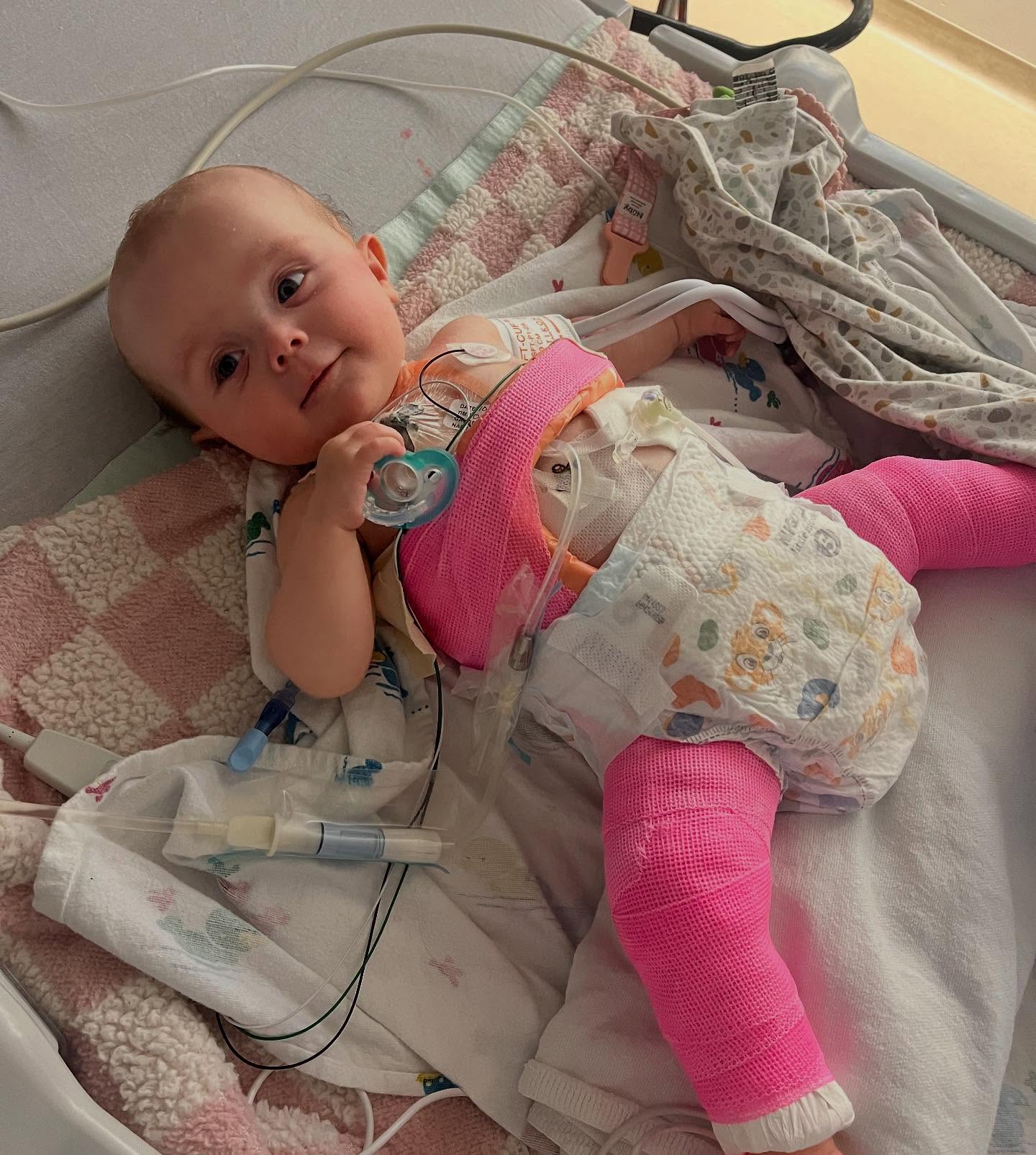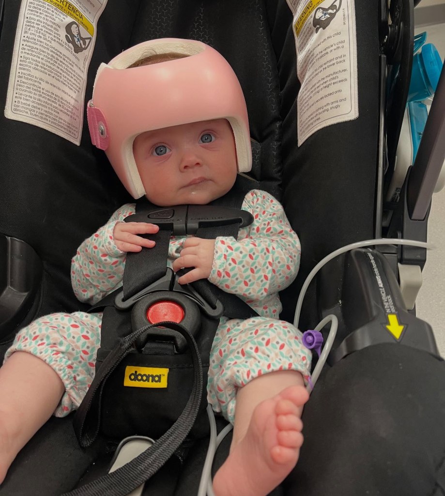 Just weeks after she left the NICU, Claire received a helmet, needed from her extended time lying down in the NICU. In October, Claire underwent surgery again for leg casts, needed to correct a dislocated hip and hip dysplasia. And every, single night, Betsy and JJ began the 45-minute process to set Claire up for a full night of her life-saving dialysis.