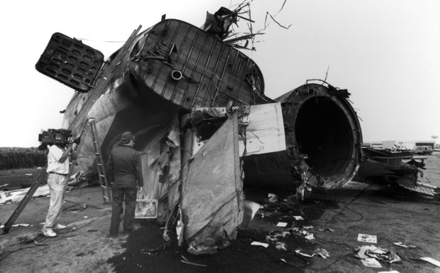 “We knew the plane had lost all hydraulics somewhere near Storm Lake, Iowa,” said Jim. “Our assignment editor at the time sent Dave Boxum, a reporter/photographer, straight to the airport. I got in a van with Cathy Egan, a reporter, and we were heading to Highway 20 east of Sioux City. We were told the plane was going to try and land on Highway 20.”
